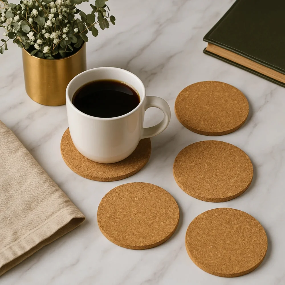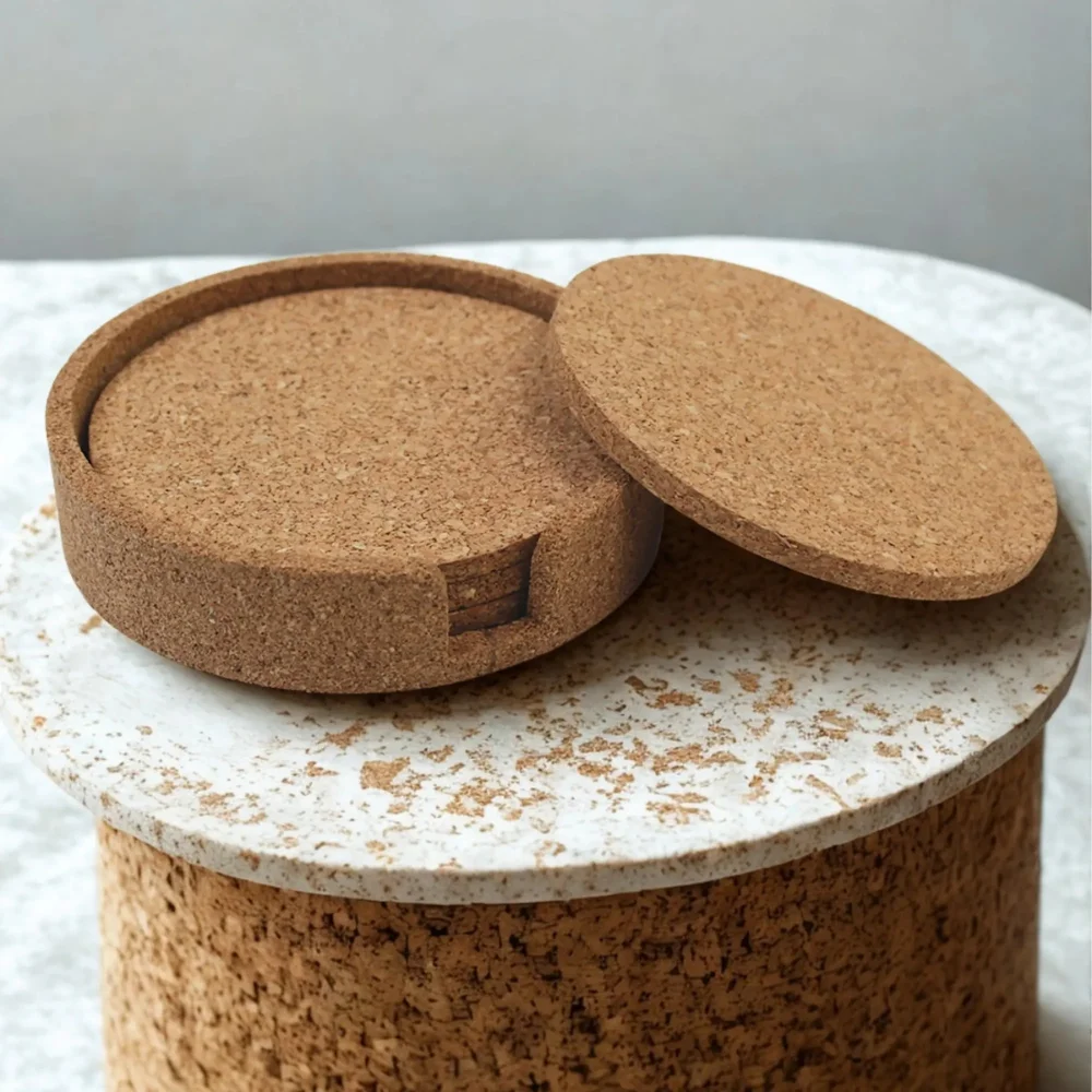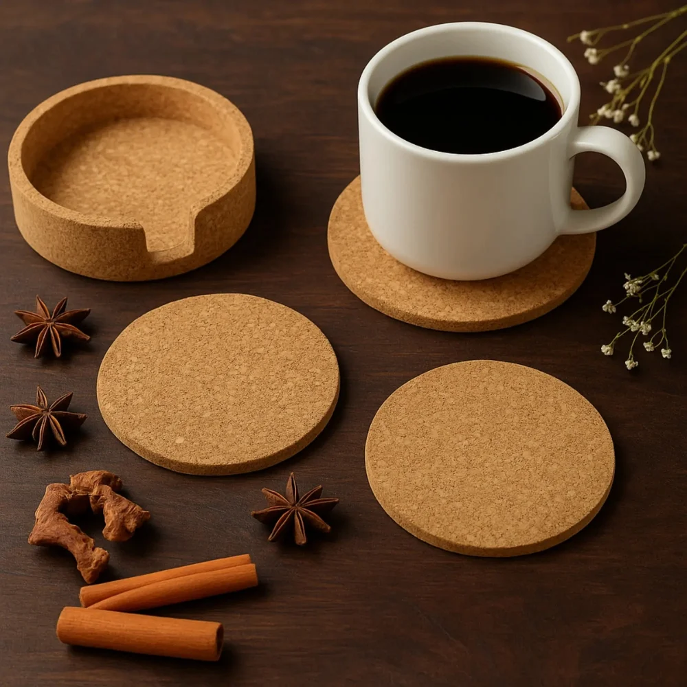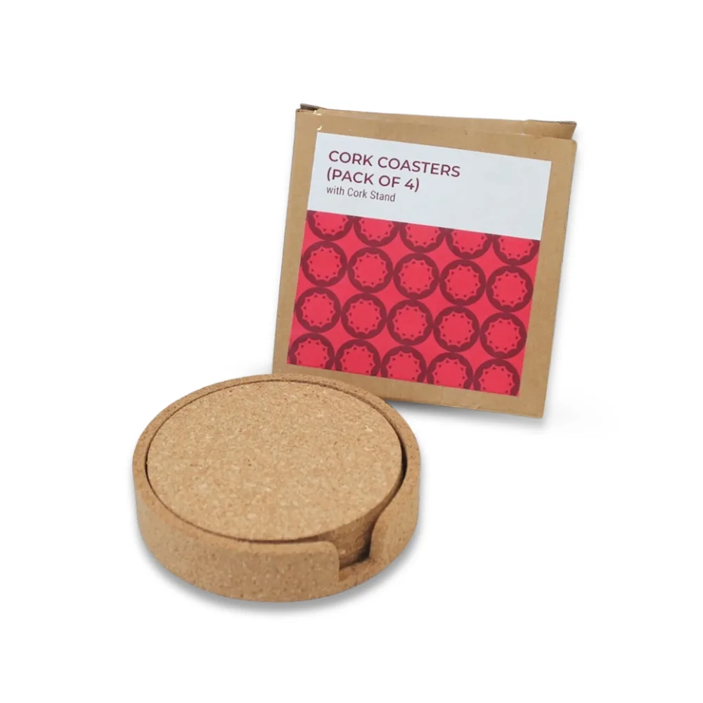 4 Cork Coasters With Holder