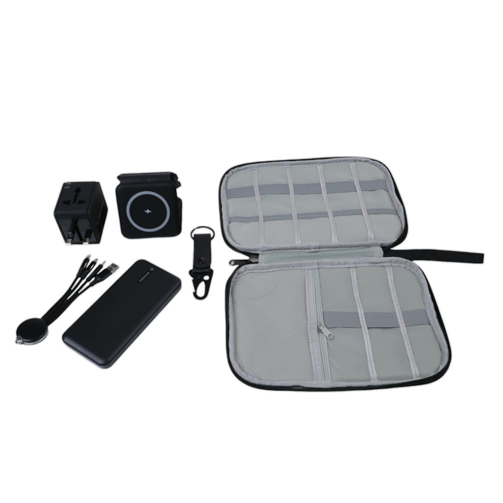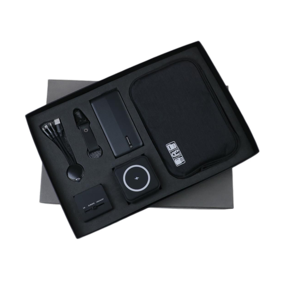 6in 1 Gift Set Note Book, Key Chain, 3 in 1 Data Cable, Power Bank 10,000 MAH, Wireless Charger, Gadget Pouch