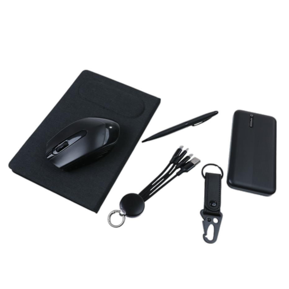 6in 1 Gift Set Note Book, Key Chain, Pen, 3 in 1 Data Cable, Power Bank 10,000 MAH, Wireless Mouse