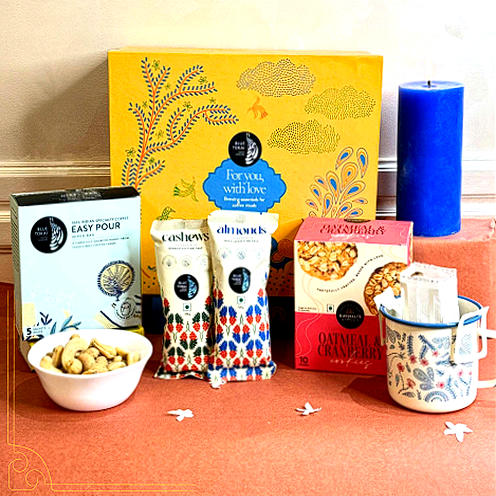 Suchali’S Oatmeal & Cranberry Cookies (10 Pieces) Almonds (50 Gms) Cashew (50 Gms) Mixed Easy Pour (Pack Of 5) Enamel Mug (300 Ml)