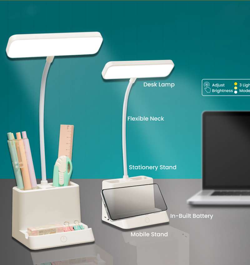 Product features: desk lamp lighting: 3 colour modes adjust brightness In-built battery pen stand mobile stand stationary stand