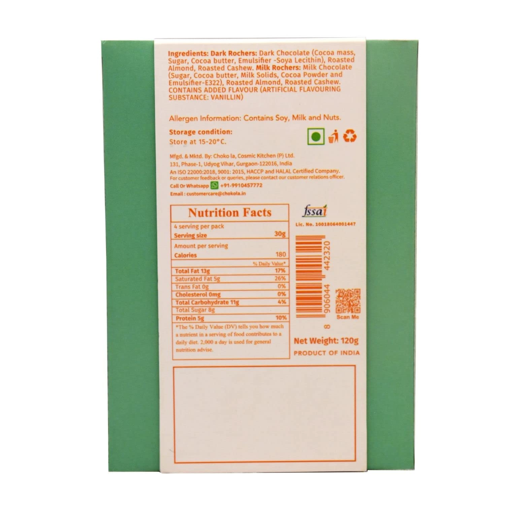A Classic Selection Of Mixed Rochers That Sets A Joyous Tone To Your Special Celebrations In An Ornate Green Gift Box. Shelf Life : 6 Months, Net Weight : 120 Gms