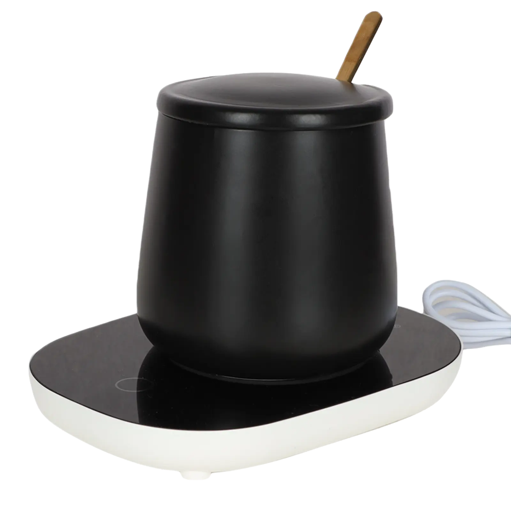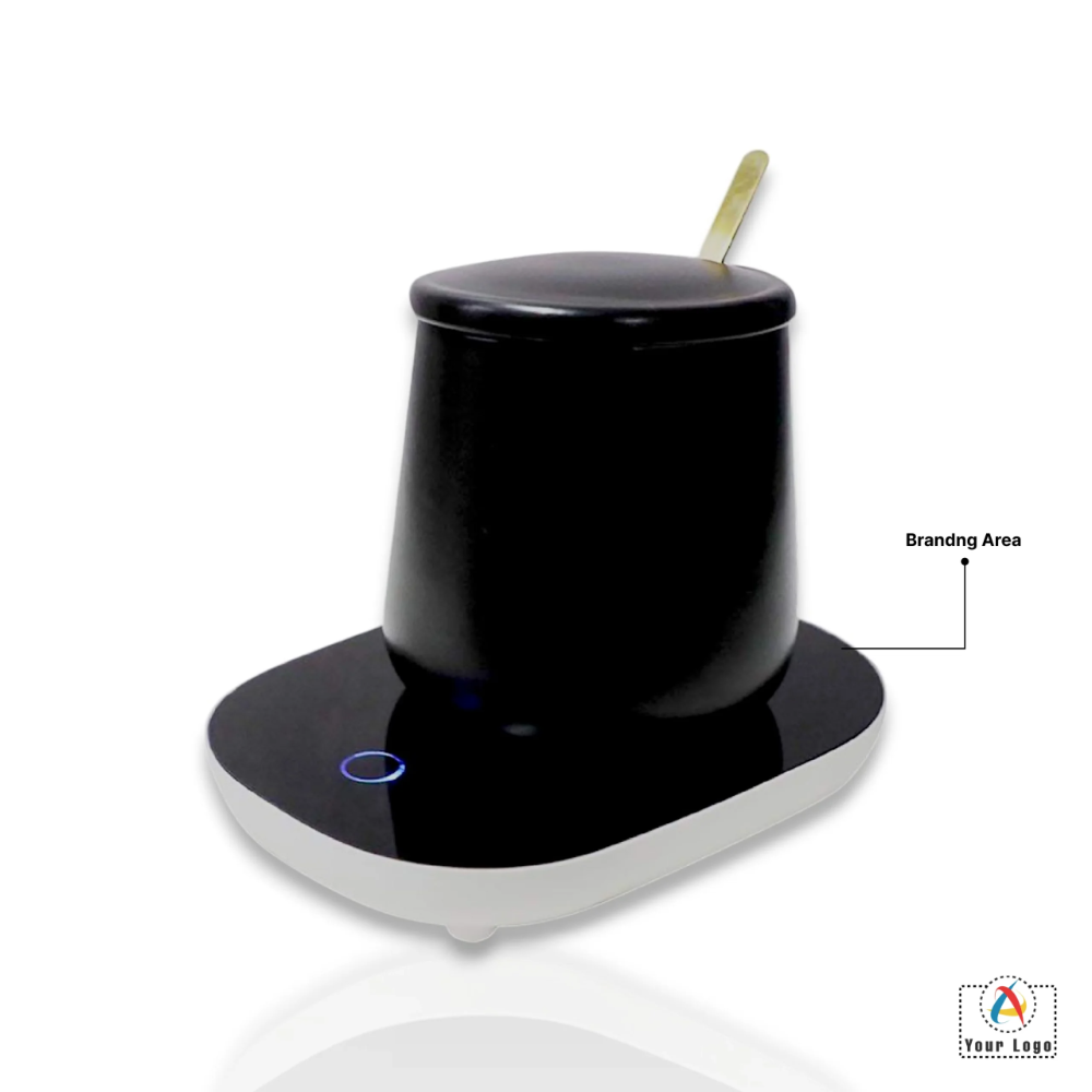 Product features: constant temperature at 55 celsius premium heating coaster Ideal temperature for beverages Ceramic mug & stainless steel spoon