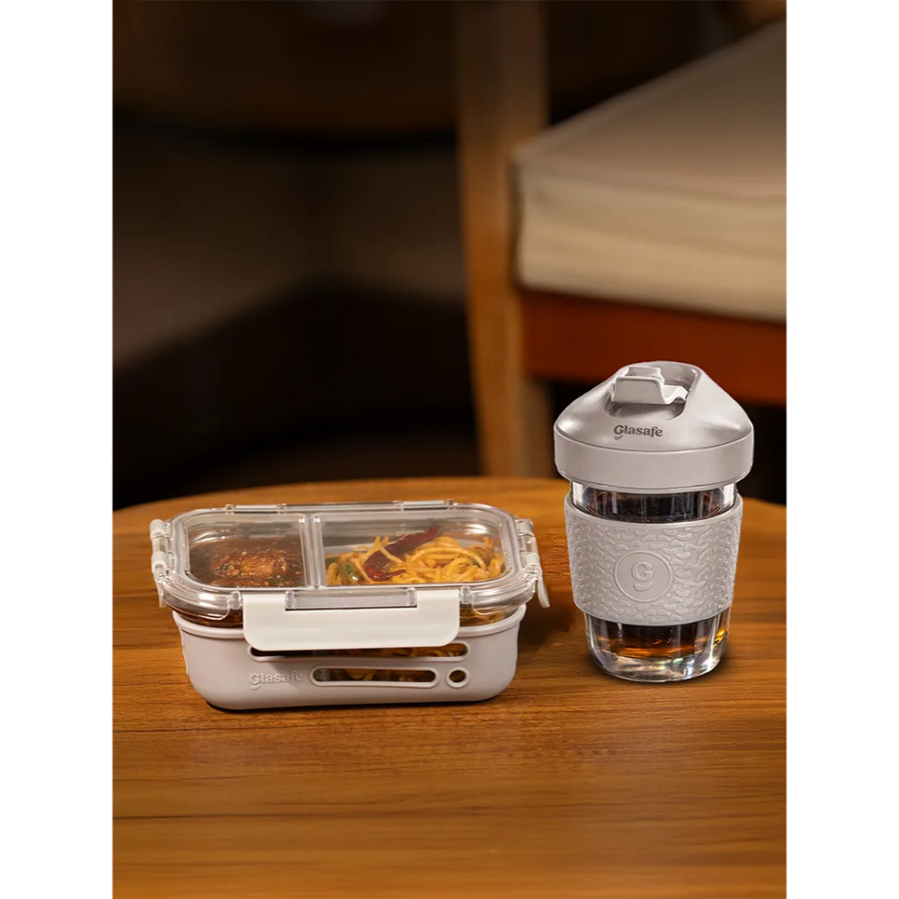 COLORS AVAILABLE: Mellow Mist, Soothing Slate, Tranquil Teal Combo Contents: Glass Bottle 750ml × 1 Glass Tiffin 580ml × 1 Coffee Mug 320ml × 1