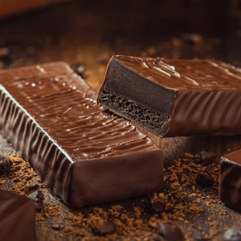 Experience The Sheer Delight Of Our Dark Chocolate Finger Bar, Where A Luxurious Chocolate Coating Embraces A Moist Chocolate Sponge At The Base, Crowned With A Velvety Ganache Layer In The Center.