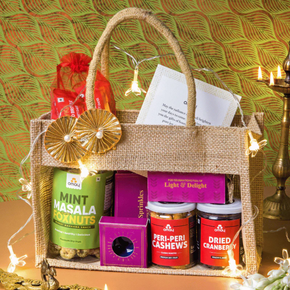 Diwali Greeting Card In A Premium Jute Bag With Zipper