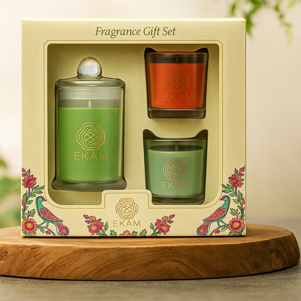 GIFT SET PACK OF 3 Contains : Shot Glass Votive Candle Net Wt : 43 g each Apothecary Candle Net Wt : 99 g
