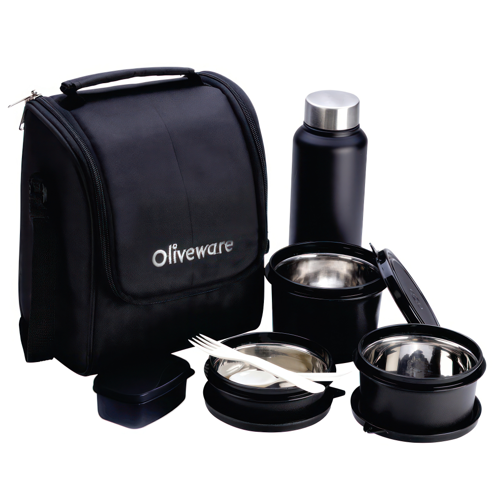 TESO PRO LUNCH BOX Capacity:1×300, 1x450ml, 1x600ml, 1x130ml, 1x750ml Steel Bottle Colour: Red, Blue, Black