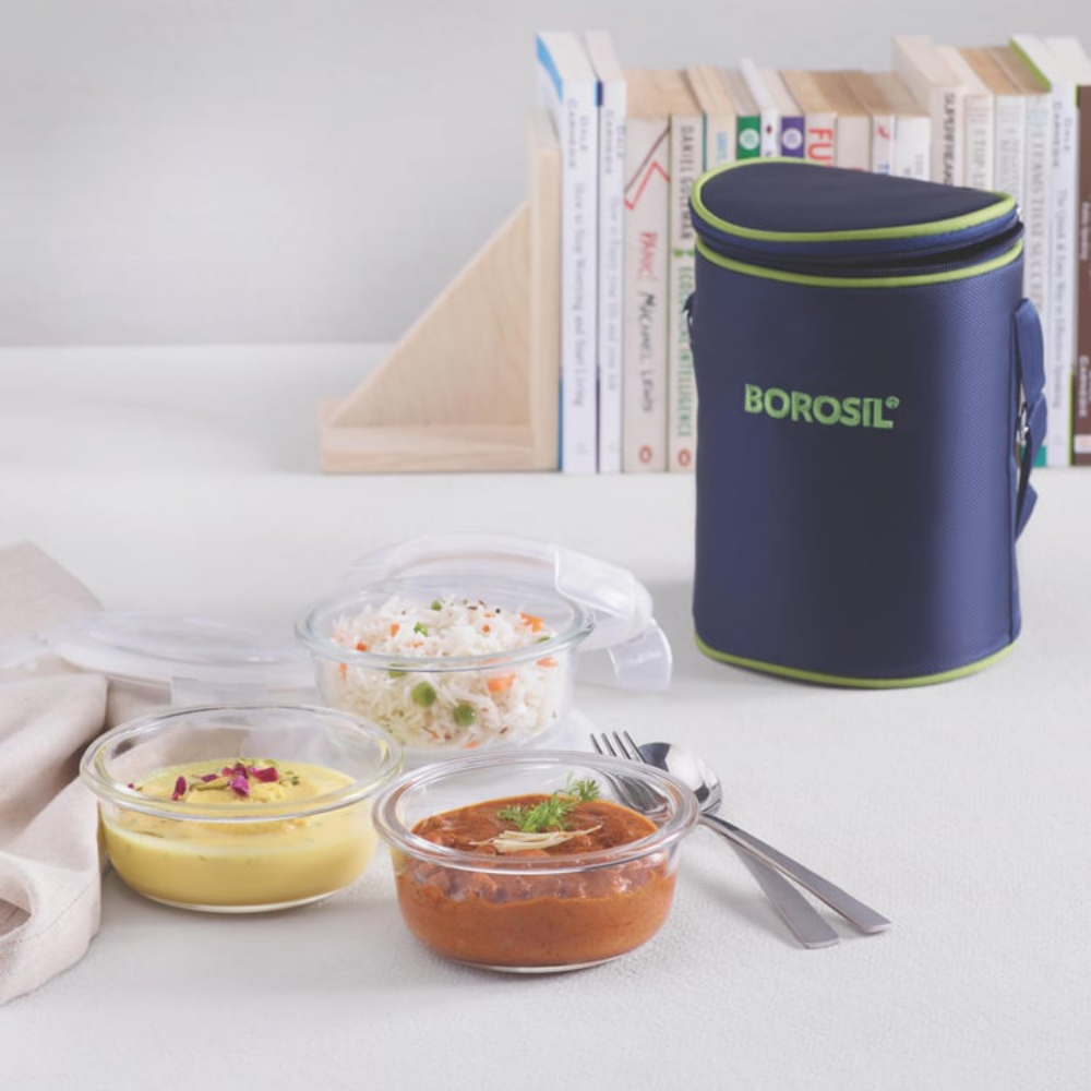 MICROWAVABLE GLASS LUNCH BOX (ROUND – S ET O F 3)