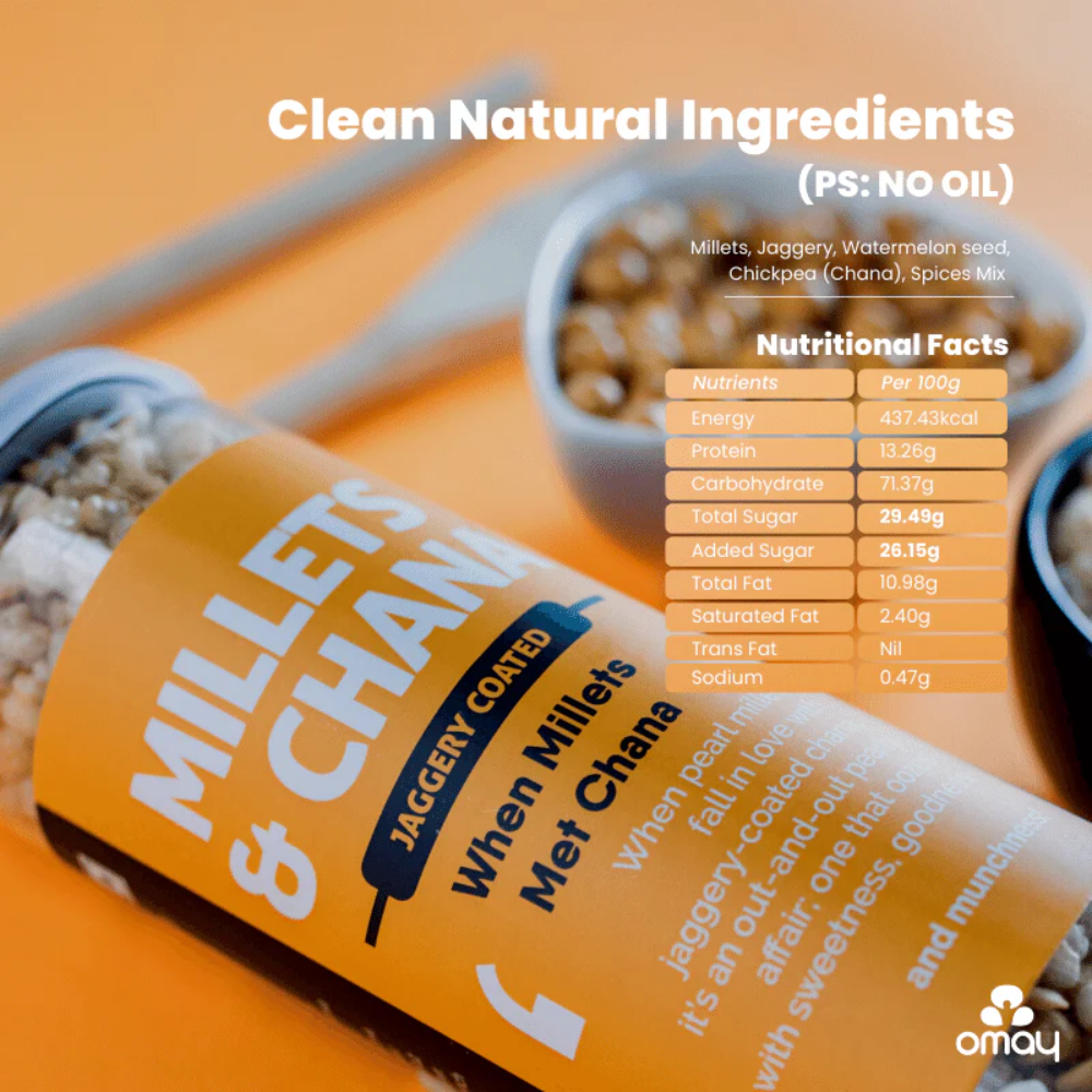 Ingredients: Millets, Jaggery, Watermelon Seeds, Chickpea (Chana), Spices Mix 55g