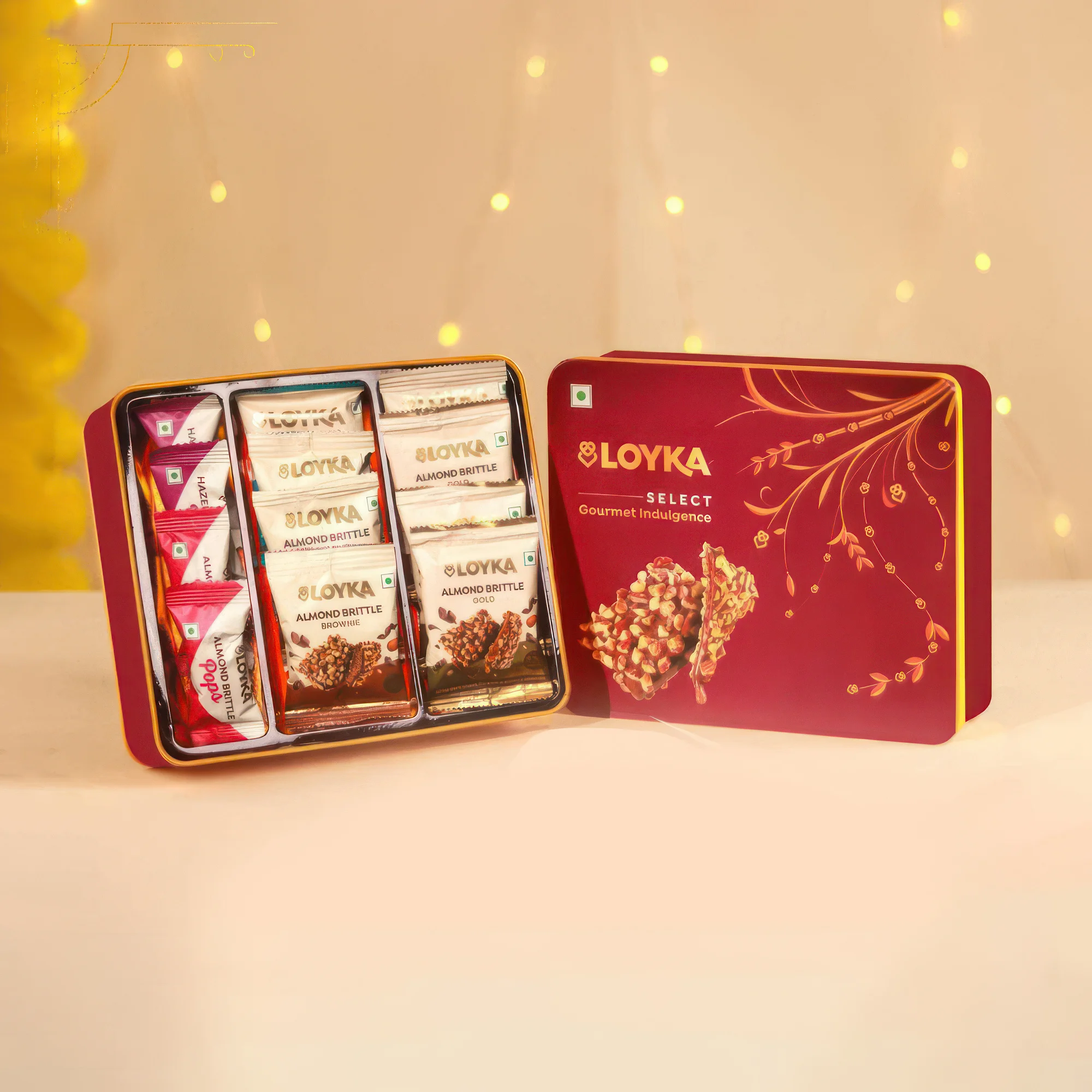 3 Almond Brittle Gold 3 Almond Brittle Brownie 2 Almond Cookies 2 Almond Brittle Pops 2 Hazelnut Brittle Pops