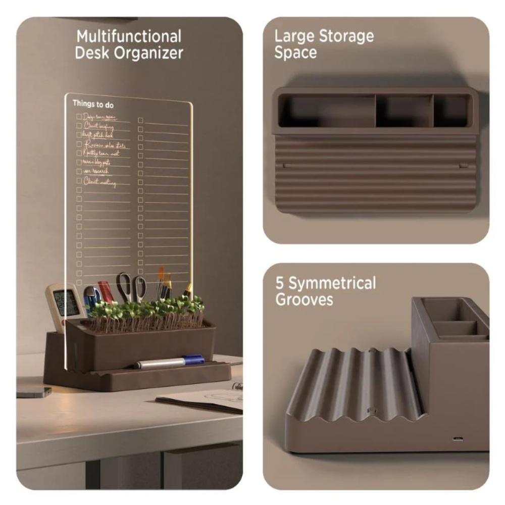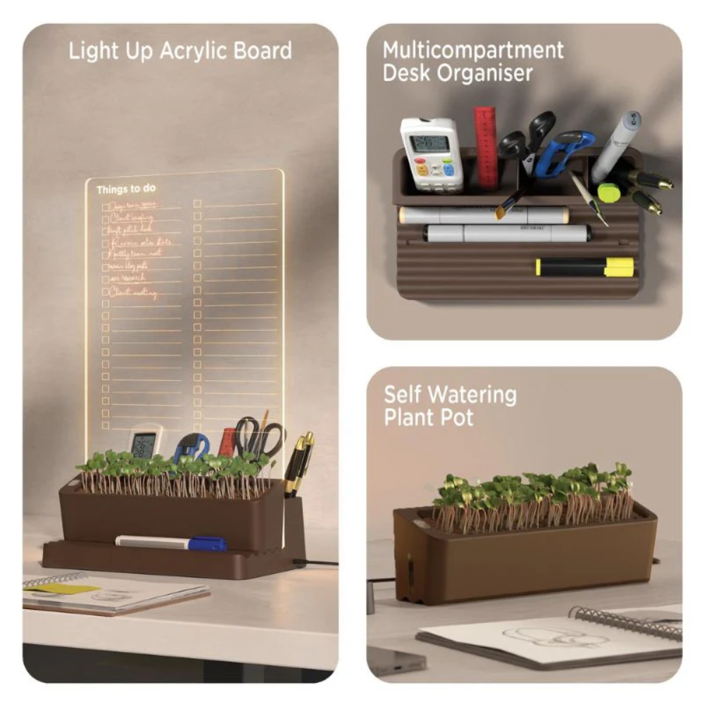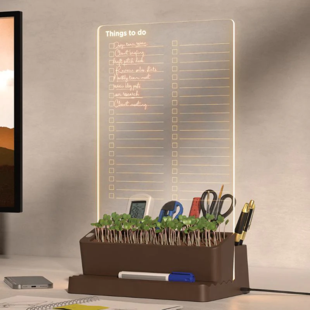 Light Up Planner & Desk Organiser Clear Acrylic Writing Board Desk Organiser Micro USB Powered Phone Holder Self Watering Plant Pot