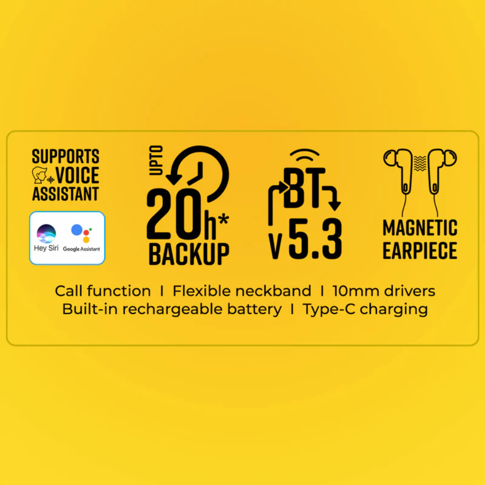 Wireless BT earphone with neckband Volume/media control Magnetic earpiece Call function Voice assistant support Built-In rechargeable battery